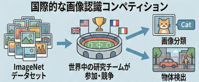 ILSVRCとは、大規模画像データセット「ImageNet」を用いて、2010年から2017年まで毎年開催された、世界最高峰の画像認識コンペティションです。