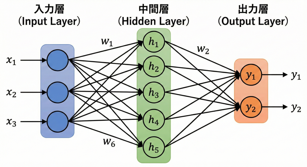 - 隠れ層:外部から直接見えない、ブラックボックスになっている層。