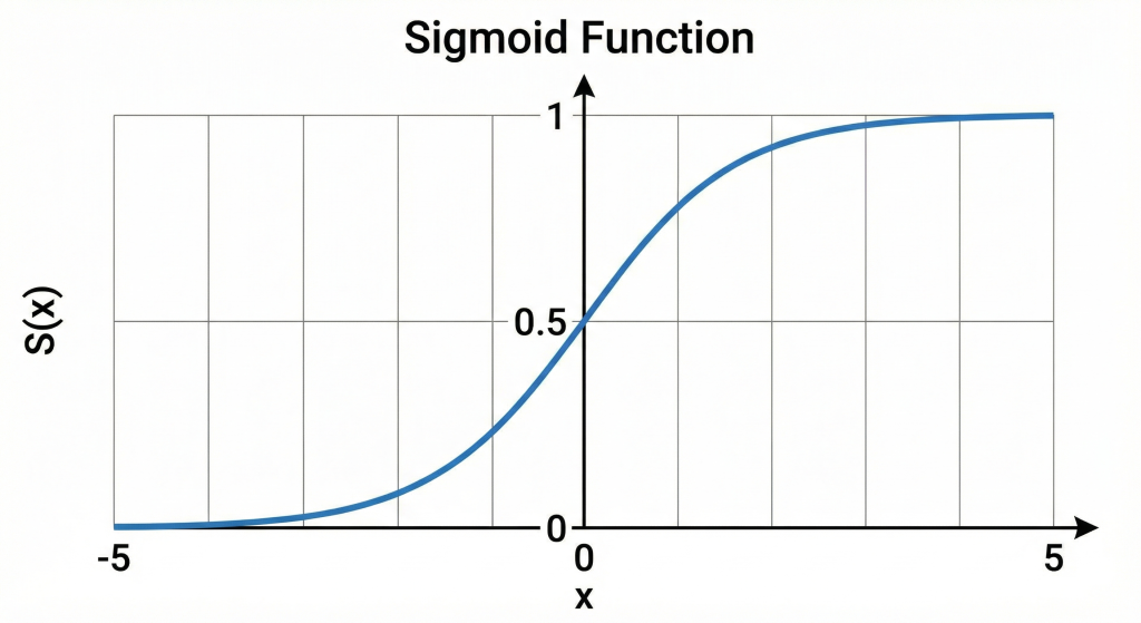 シグモイド関数は、どんな入力値が来ても、出力を必ず「0から1」の範囲にギュッと圧縮する性質を持つS字型の関数です。