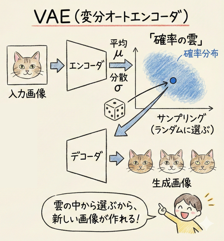 🎲 VAEの仕組み:サイコロを振って絵を描く